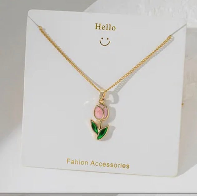 Hermosos tulipanes material de la cadena y bordes en acero inoxidable
